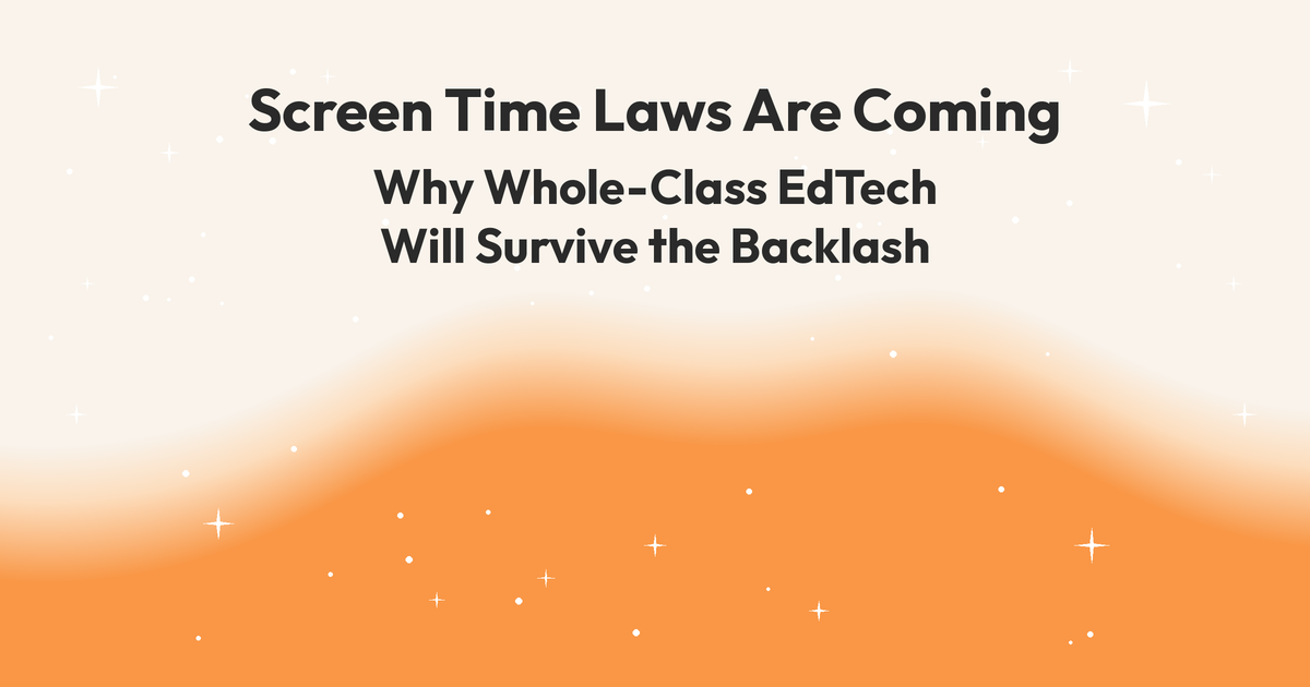 16+ states are moving to limit screen time in schools — but the legislation misses a critical distinction between isolating, self-paced tech and teacher-led, whole-class tools that bring students together.